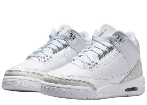 The Jordan 3 Retro Pure Money (2025) GS combines timeless style with modern elegance, designed specifically for grade school feet. Its clean white leather upper offers versatile wear, while metallic silver accents on the eyelets and branding add a sophisticated edge. This iconic silhouette delivers both comfort and standout style, making it the perfect choice for young sneaker enthusiasts who want to make a bold statement. Elevate your collection with a fresh take on a classic favorite.